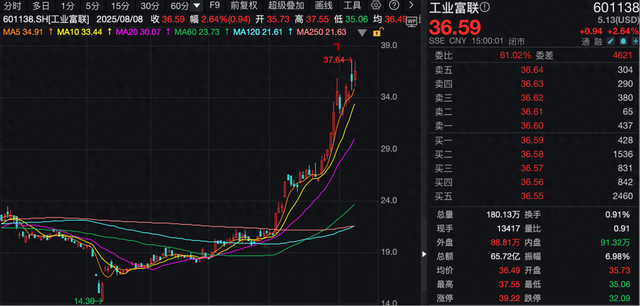 8月10日晚间,工业富联发布的2025年半年报显示,受益于AI相关业务的强势增长,上半年工业富联实现营收3607.6亿元,同比增长35.6%;实现归母净利润121.1亿元,同比增长38.6%,均创同期历史新高。